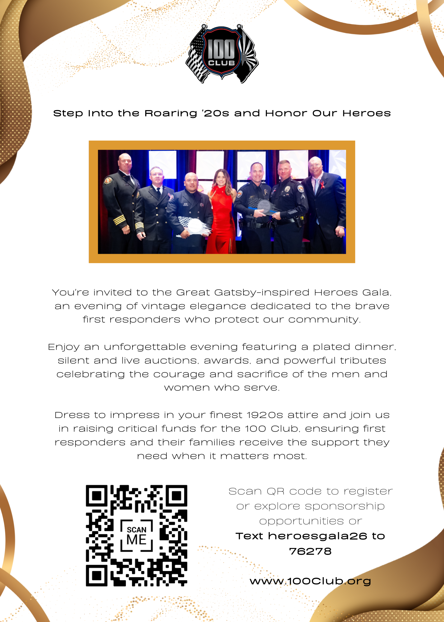 At our Annual Gala, we raise our voices in gratitude to our first responders —the extraordinary men and women who dedicate their lives to serving others. Every day, they show us the remarkable strength and resilience of their commitment. We extend our heartfelt thanks to each of you for your generosity and dedication in supporting our officers, firefighters, and their families. Thank you for continuing to uphold and honor our mission: standing with our officers and firefighters on the front lines. Let us celebrate tonight the courage and sacrifice of those who answer the call, no matter the cost.